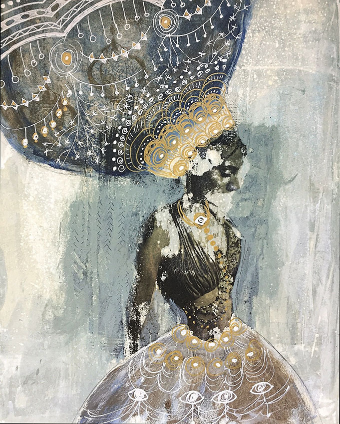 That’s Yasmin Youssef. Full-time multi-layered visual artist. Previously a User Experience Designer and professional dancer. Ethereal observer and watcher of the moon. Her gilded artwork can shimmer in your very own home, or would make a thoughtful gift for someone special since–hint, hint–some gift-giving holidays are coming up. Yasmin’s art studio is located in east Austin, and you will hopefully be able to catch her at some upcoming art shows, depending on the pandemic. Sidenote: the podcast took a 6 month pause so I could grieve a snowball of losses in the family, but I’m trying to channel that into my art, which perfectly aligns with this month’s guest.